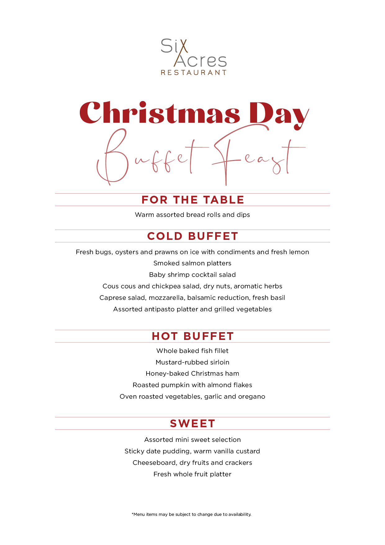 To secure your seats for the Christmas Day Buffet Feast, click here.